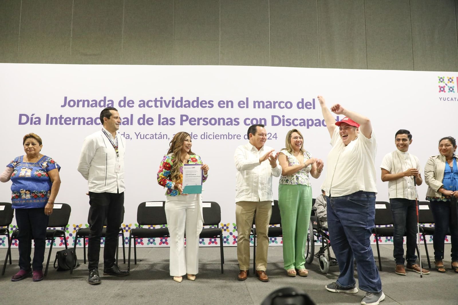 En el marco del Día Internacional de las Personas con Discapacidad, Díaz Mena y la presidenta del DIF Yucatán, la maestra Wendy Méndez Naal, entregaron aparatos de movilidad y unidades de traslado adaptadas para este sector de la población.